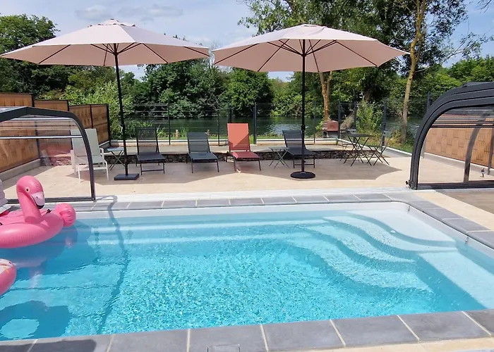 Gîte familial avec piscine privative chauffée, terrasse sur le Loir et proche du Zoo de La Flèche - FR-1-410-329